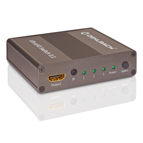 Через коммутатор Oehlbach UltraHD Switch 3:1  можно поочерёдно подключать к оконечному устройству до трёх источников сигнала.  Блок с тремя HDMI-входами принимает сигналы с разрешением до UltraHD в 2160p и без потерь качества направляет их с выбранного входа на подключенное  на его  выходе целевое устройство. Наряду с видеосигналом UltraHD  коммутатор поддерживает все форматы аудио вплоть до Dolby TrueHD, DTS-HD MA и DSD. Три HDMI-входа и один HDMI-выход  снабжены позолоченными разъёмами (24 карата), что гарантируют максимально надежный контакт. Металлический корпус имеет компактные размеры 95 x 25 x 86 мм ( ширина x высота x глубина)  и весит всего 136 гр.  UltraHD Switch 3:1  комплектуется пультом дистанционного управления.