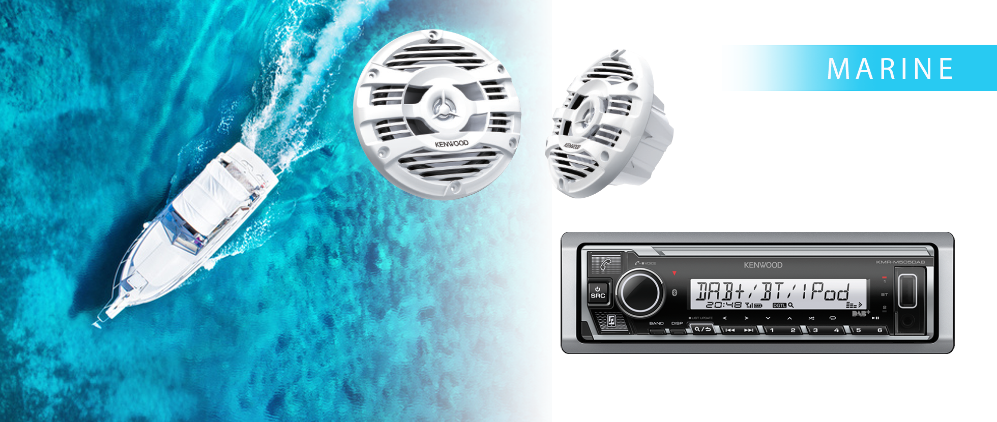 Морський, цифровий медіа-ресивер з вбудованими DAB-тюнером і Bluetooth.