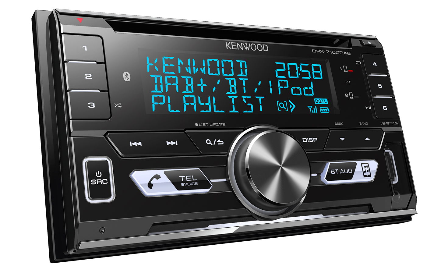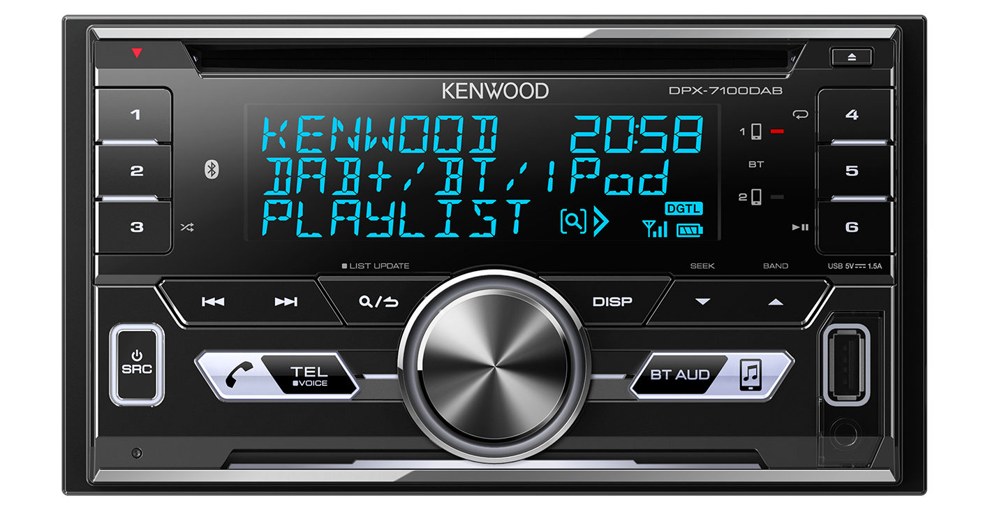 Цифровий CD медіа-приймач розміром 2 DIN з вбудованими цифровим радіо DAB+ та модулем Bluetooth має: