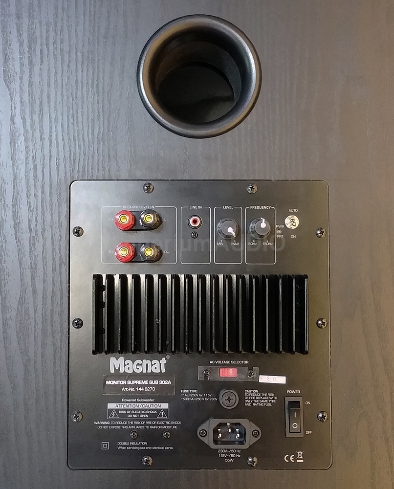Monitor Supreme Sub 302A — активный сабвуфер с самой большим объёмом в серии. В прочном корпусе, изготовленном из качественной МДФ размещен 300 мм НЧ-динамик. Конструкция оптимизирована в измерительной лаборатории. Посторонние потоки воздуха устраняются фазоинверторной трубой. Посторонний резонанс устраняется демпфированием за счёт резиновых ножек, входящих в комплект.