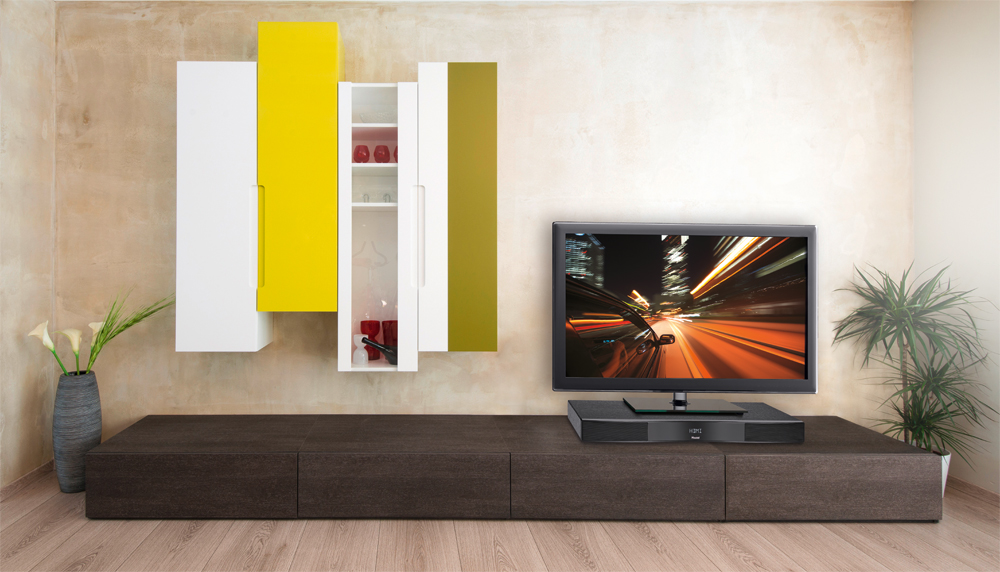 Идеальная интеграция в гостиную под телевизор с плоским экраном благодаря плоской конструкции